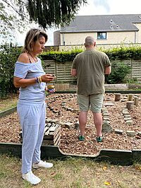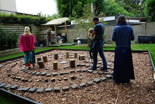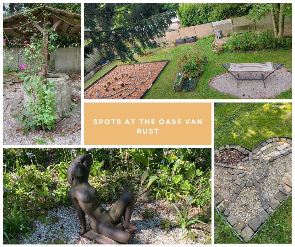The Oase van Rust is a quiet, hidden oasis in Brecht. Cathy has lived in her tiny house here for more than two years. During that time, she has cultivated the garden. Cathy decorated it all by herself, reusing materials from the garden. She finished the last part in the summer of 2024. She created her own labyrinth.