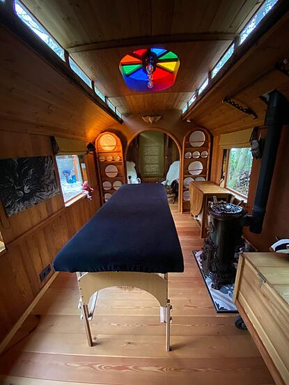 Additional services are available, like bodywork, massage, reiki,... in the beautifull pipo wagen on the domain.